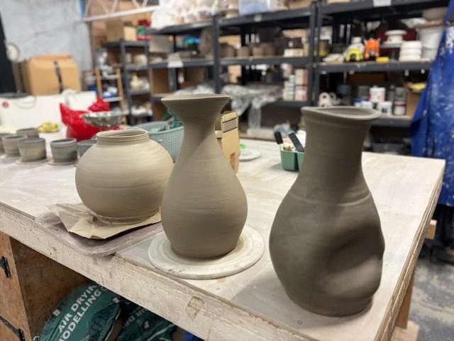 Each vase is pre-thrown and prepared to the perfect softness for hugging, so you can focus entirely on the expressive, sensory experience of shaping it.